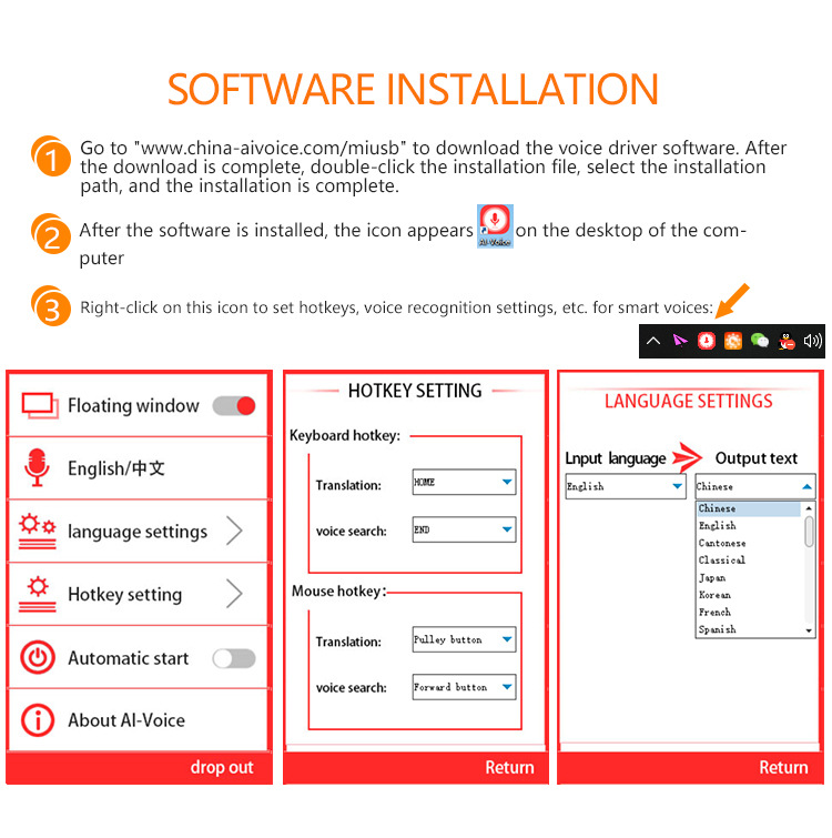 2. Применимо к текстовым работникам, специалистам по международной торговле, службе поддержки клиентов в области электронной коммерции, пользователям компьютеров и т. д., может обеспечить эффективный вход, точное преобразование голоса в текст и одновременное точное переведение установленного иностранного языка.