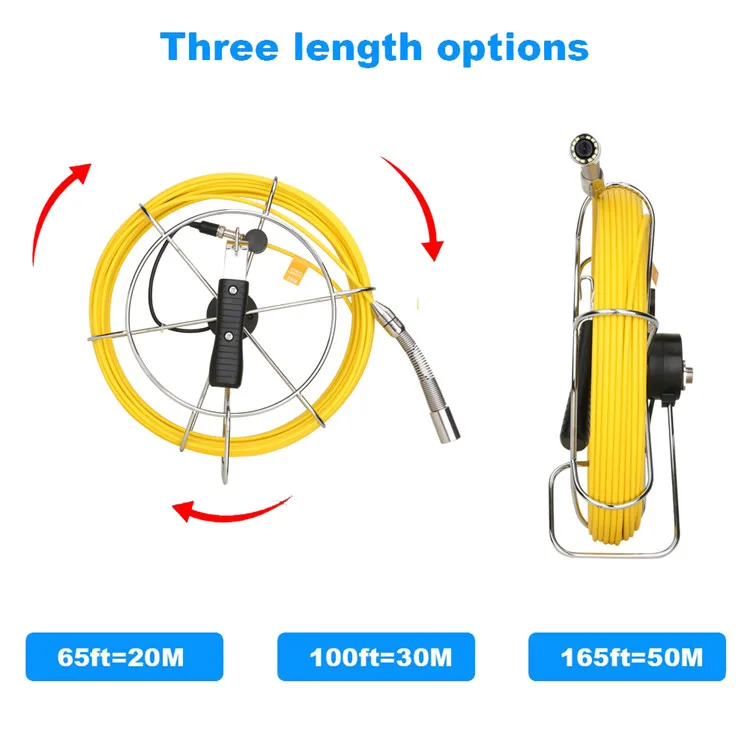 Водопроводная канализационная трубопроводная промышленная эндоскопическая система с высоким разрешением HD 1000TVL IP68 #304 камера из нержавеющей стали + зонд с наконечником + Широкий угол обзора 145 °, что делает его ясным при осмотре некоторых мест, трудно контролировать. 12 шт. Регулируемые светодиоды для освещения труднодоступной области осмотра. Проверки будут более четко видны в темной среде.