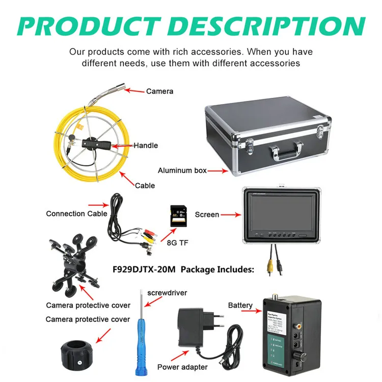 Зонд с креплением камеры с 9 "ЖК-монитором для просмотра труднодоступной области осмотра. Роскошный кожаный солнцезащитный козырек обеспечивает Четкий просмотр при наружной проверке и дополнительную защиту для монитора. В комплект входит полностью мягкий чехол, который хранит все наборы для удобства транспортировки и использования. Это устраняет потребности разрывания гипсокартона для обнаружения утечек и помогает решить проблемы с трубами. Это должно быть для любого домашнего владельца, подрядчика и даже профессиональных сантехников!