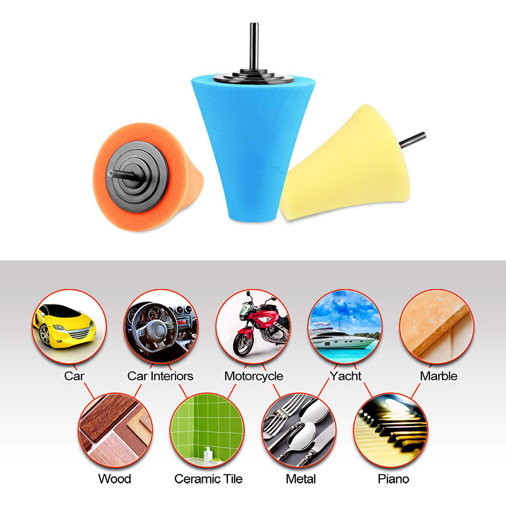 Конический дизайн, эти профессиональные Полировка пены проста в использовании на неровной поверхности полировального колеса, Может использоваться повторно после очистки, прочный и экологически чистый Продукты по уходу за автомобилем.