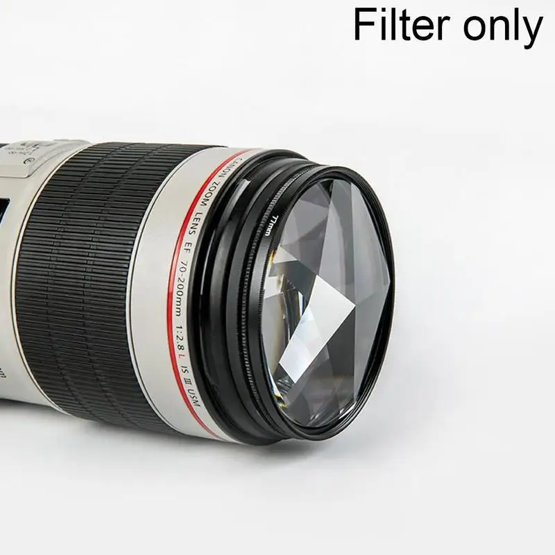 Диаметр призмы 77 мм, который подходит для объектива 77 мм. Его можно подключить к объективам 82 мм или другого размера через переходное кольцо. С помощью этой стеклянной призмы вы можете принять некоторые интересные эффекты. В таких сценах, как персонажи, декорации, ночные сцены и т. Д., я надеюсь, что вы сможете играть более неожиданные трюки.