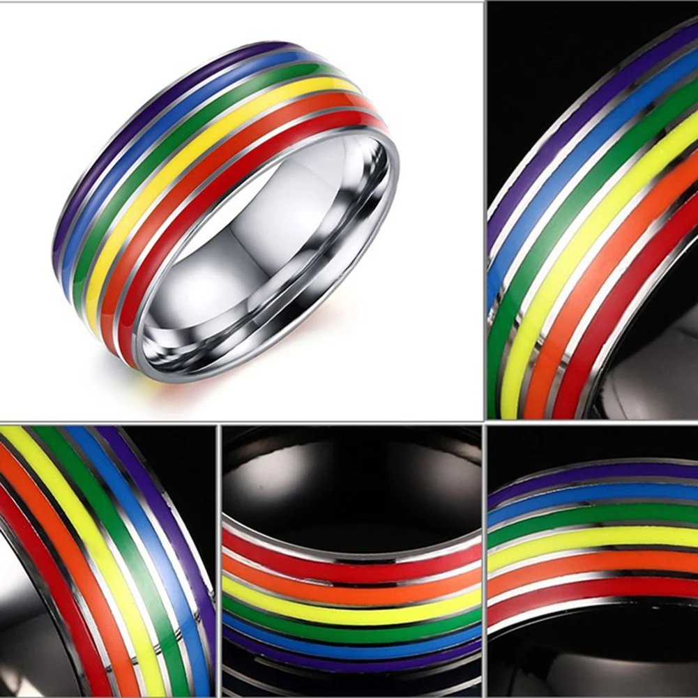 MenWomenRainbow цветные кольца из нержавеющей стали для лесбиянок и геев