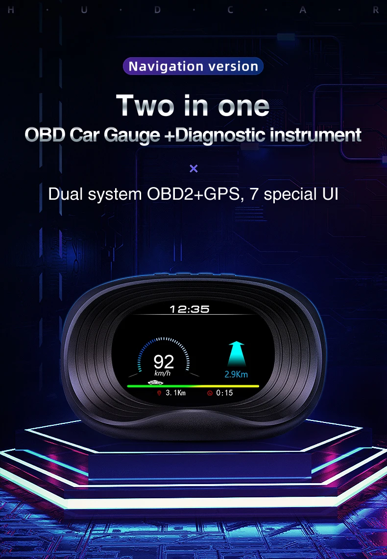 Особенности: 100% совместимость OBD + GPS Двойная система HD дисплей, нет двойного изображения, четкий эффект в дневное время Металлическая нанотехнология на лицевой стороне для удаления нежелательных отражений для более четкого отображения OBD + GPS 2 в 1 двойная рабочая система, которая может работать на всех транспортных средствах.
