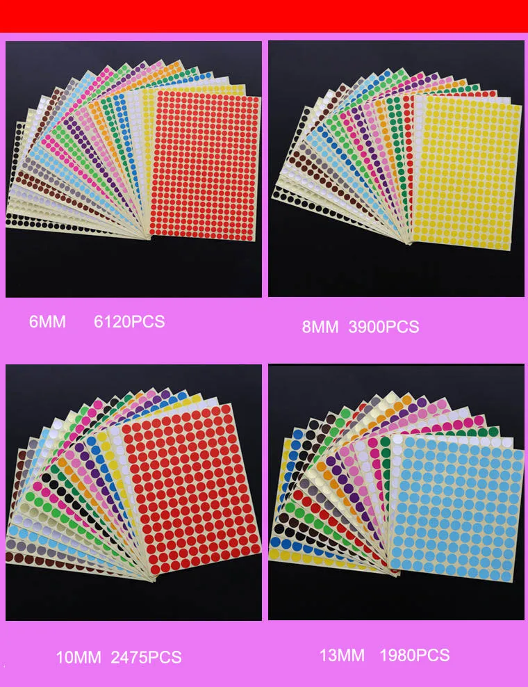 16 листов, круглые наклейки, белые самоклеющиеся клейкие этикетки, 6 мм 8 мм 10 мм 13 мм 16 мм 19 мм 25 мм 32 мм 50 мм 100 мм