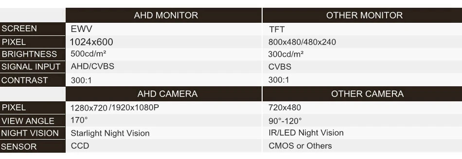 Если вам нужна камера AHD 1080P, перед размещением заказа проверьте, поддерживает ли ваш блок Android или монитор AHD камеру AHD 1080P!