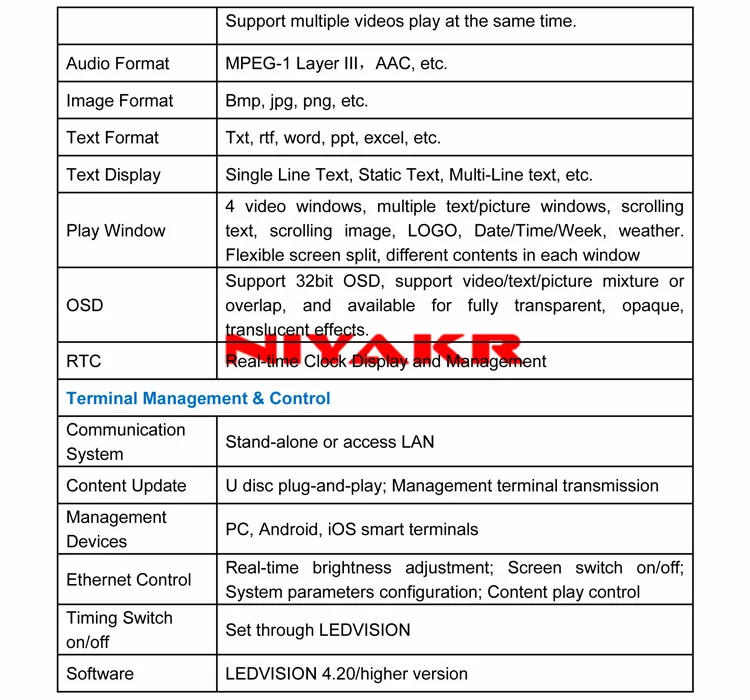 ·Поддержка публикации содержимого на U disc с помощью LEDVISION, U disc plug-and-play;