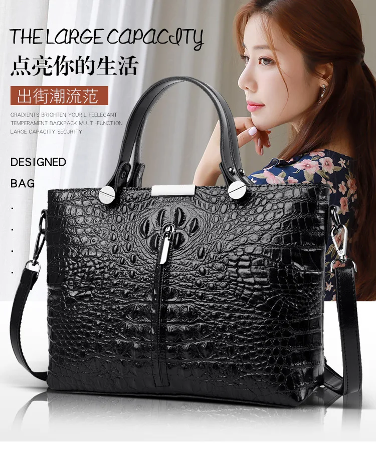 Женская сумка с крокодиловым узором, новый дизайн, сумка-тоут, верхний слой, Воловья кожа, деловая сумка, женская сумка на плечо, женский портфель