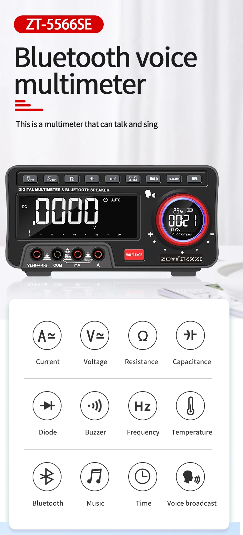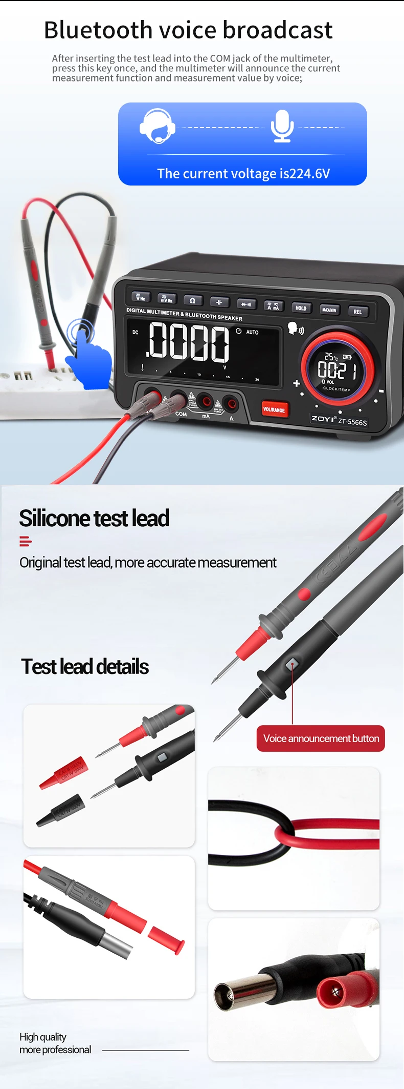 Счетчик управляется литиевой батареей, с реальным измерением rms, ЖК-дисплеем, регулируемой яркостью подсветки, четким считыванием, часами, будильником, аудио Bluetooth, дисплеем температуры окружающей среды.