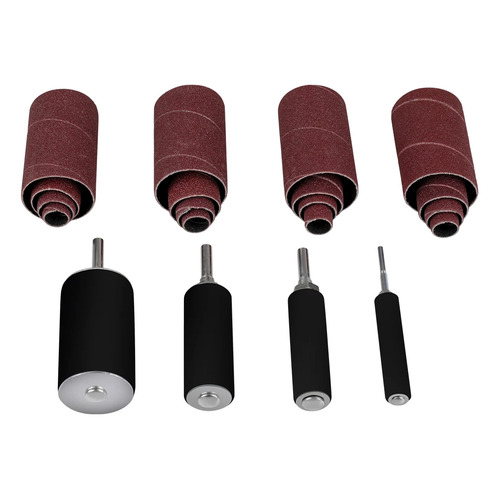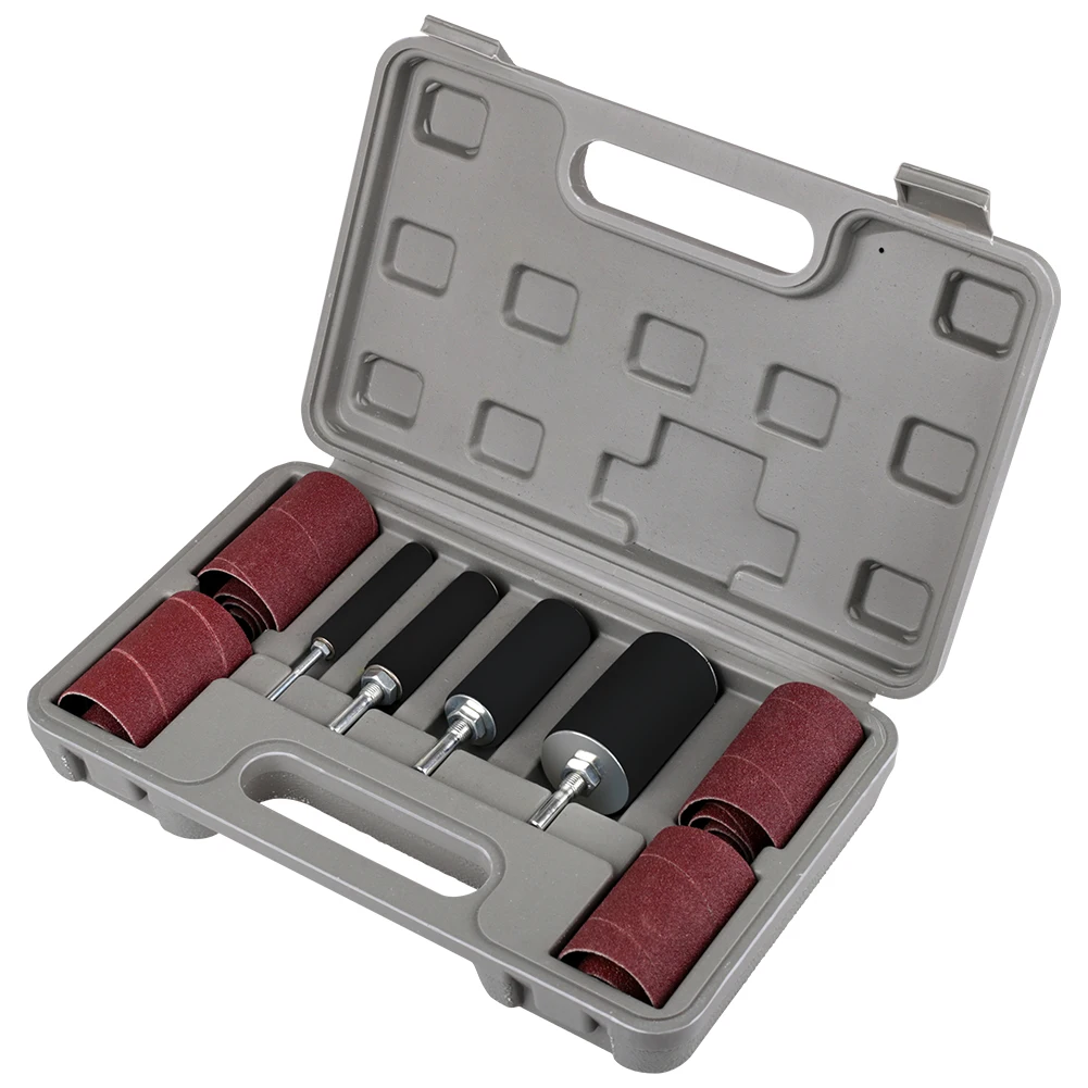 В Стиль: посылка включает в себя: 1 шт. x 1/2 & quot; Резиновые Drum1pcs x 3/4 & quot; Резиновые Drum1pcs x 1 & quot; Резиновые Drum1pcs x 1,5 & quot; Резиновые Drum2sets (8 шт.) x грубые рукава (80 зернистых) 2 комплекта (8 шт.) x тонкие рукава (120 зернистых) 1 чехол
