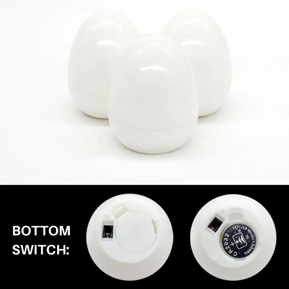 3. Переключите переключатель в нижней части яйца, чтобы включить светодиодный светильник. Каждое яйцо содержит батарею CR2032 и никаких дополнительных покупок не требуется.