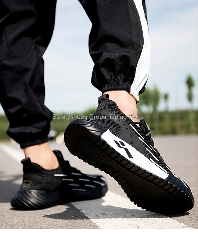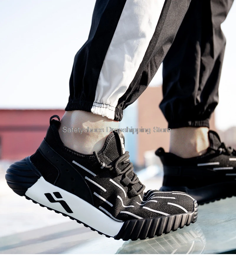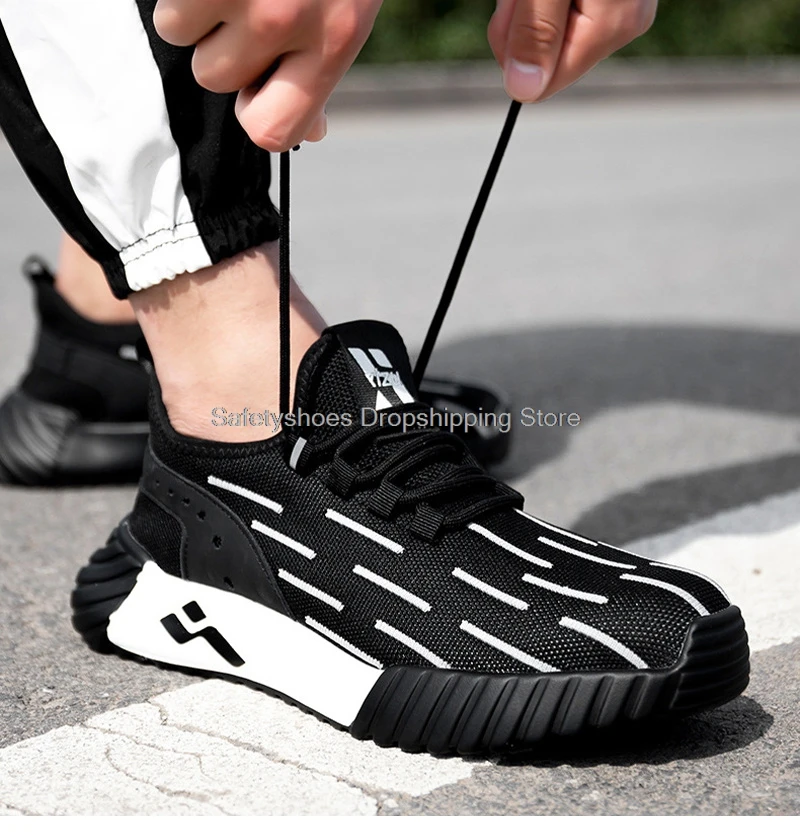 Модные рабочие кроссовки для мужчин, защитная обувь со стальным носком, промежуточная подошва из кевлара светильник, противоскользящие рабочие ботинки, мужские защитные ботинки