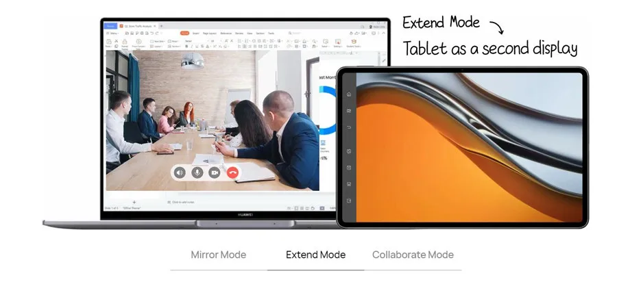 В режиме расширения * определенная задача на ноутбуке может быть перенесена на планшет, мгновенно превращая планшет в монитор.