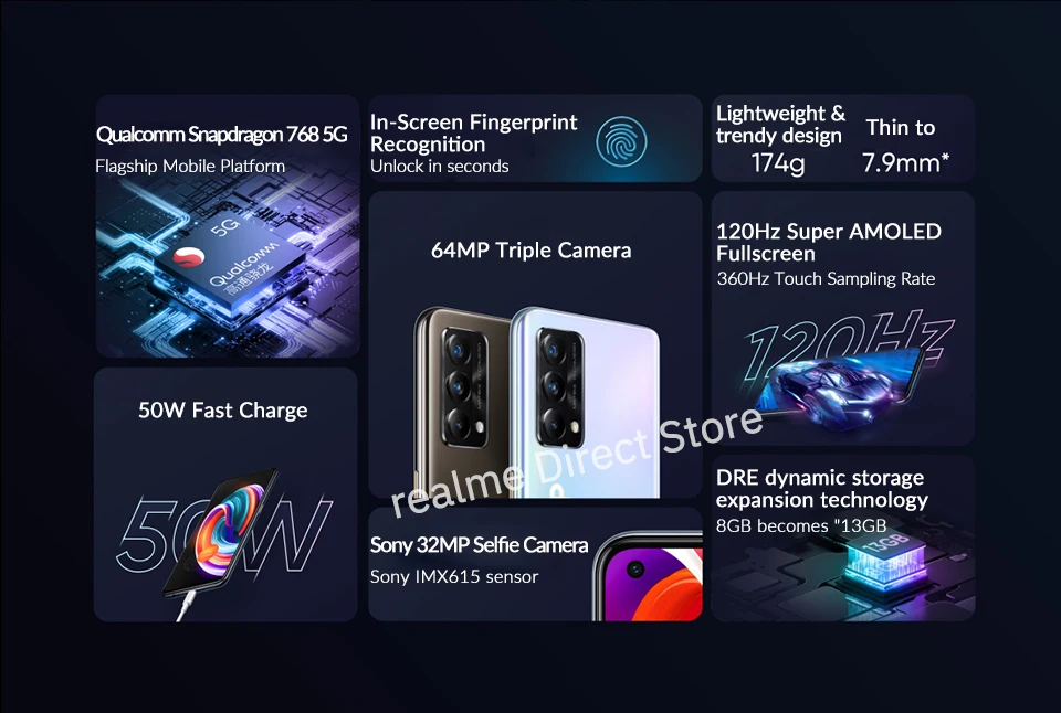 Очень тонкие, 7,9 мм и как светильник как 174g, невообразимые "тяжелых плеер" realme Q3 Pro карнавальный костюм версия светильник и светильник.