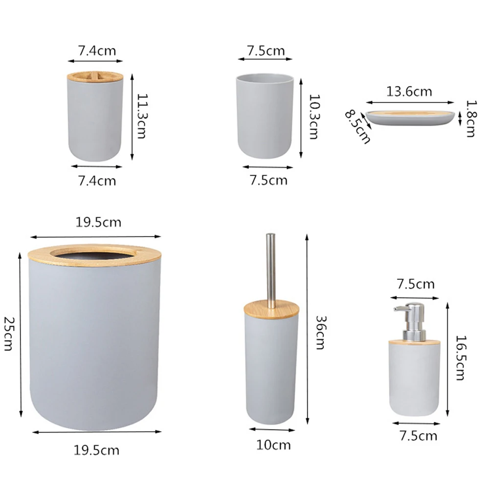 Аксессуары для ванной комнаты: включает мусорное ведро, туалетную щетку, держатель для зубной щетки, мыльницу, дозатор мыла и чашку, которые могут удовлетворить ваши различные потребности.Персонажи: мусорное ведро имеет большую емкость, держатель зубной щетки имеет 2 слота для хранения, и дозатор мыла легко нажимать.Инструмент для очистки: щетка для унитаза имеет длинную ручку для удобного захвата, и она будет держать вас от грязи.Отдельно стоящее: основание-пласт, и все они могут свободно и стабильно стоять на столешнице.