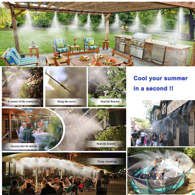 Применение: охлаждение, орошение, бассейн, туман, охлаждение сада, теплицы, ландшафтный дизайн, аквапарк батута, парус от солнца, система наружного охлаждения, зонтик, сад, ландшафтный дизайн, туманная противомоскитная система увлажнения парника, дезодорант для очистки воздуха и так далее