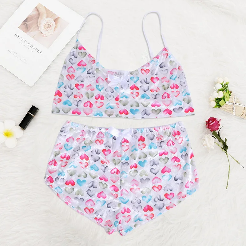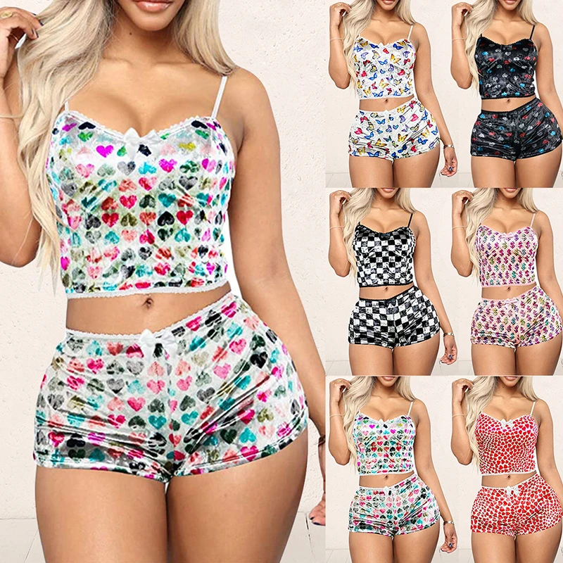 Пижама из 2 предметов, женская мягкая сексуальная одежда для сна с принтом бабочки, комплект кружевного нижнего белья, одежда в складку для сна, комплекты, женский топ + свободные шорты.