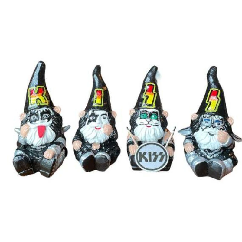This unique KISS fan garden décor consists of four garden gnome statues that stand roughly 4 -5 inches tall.