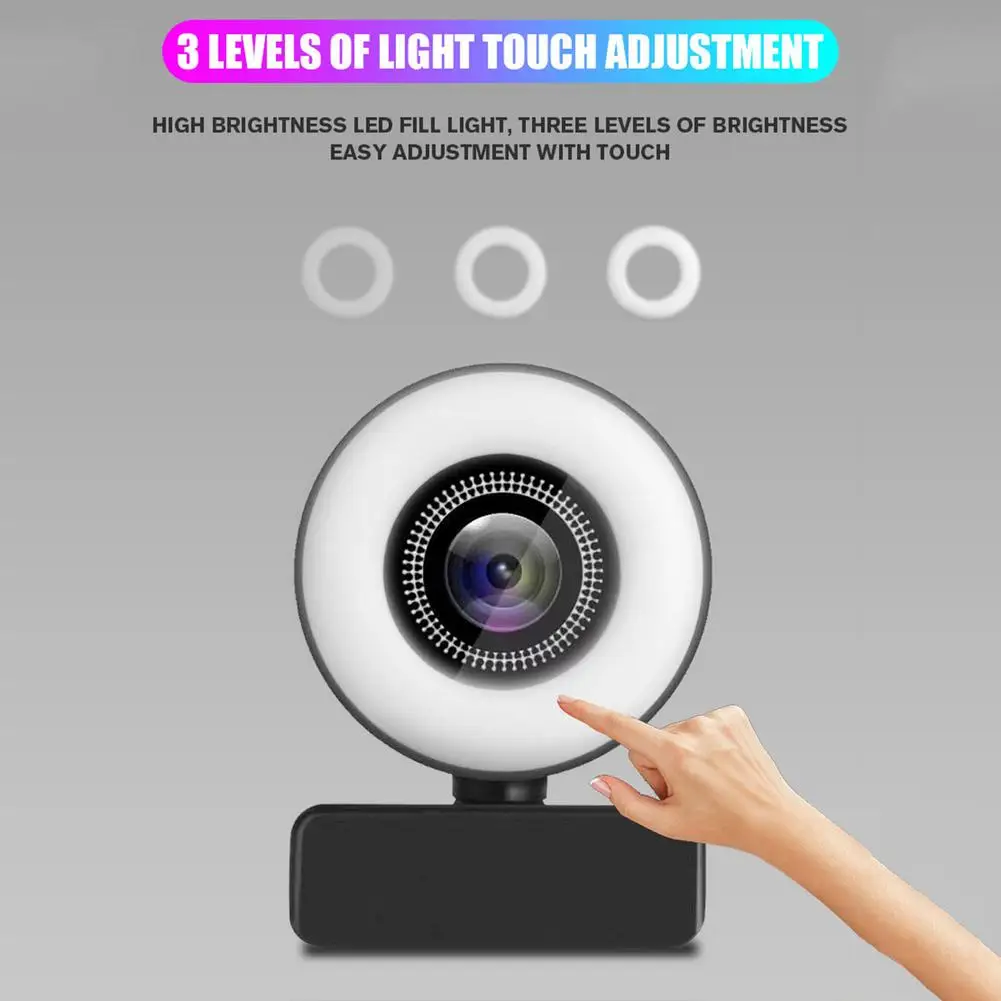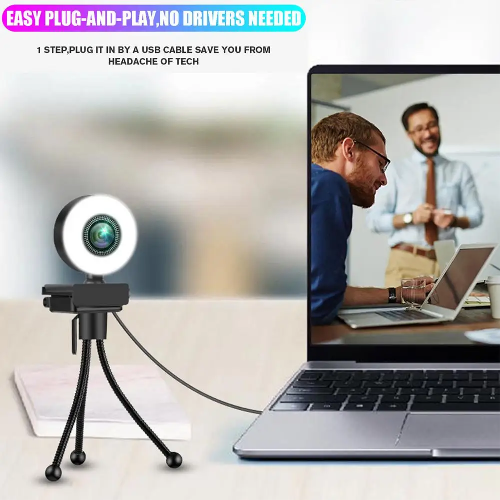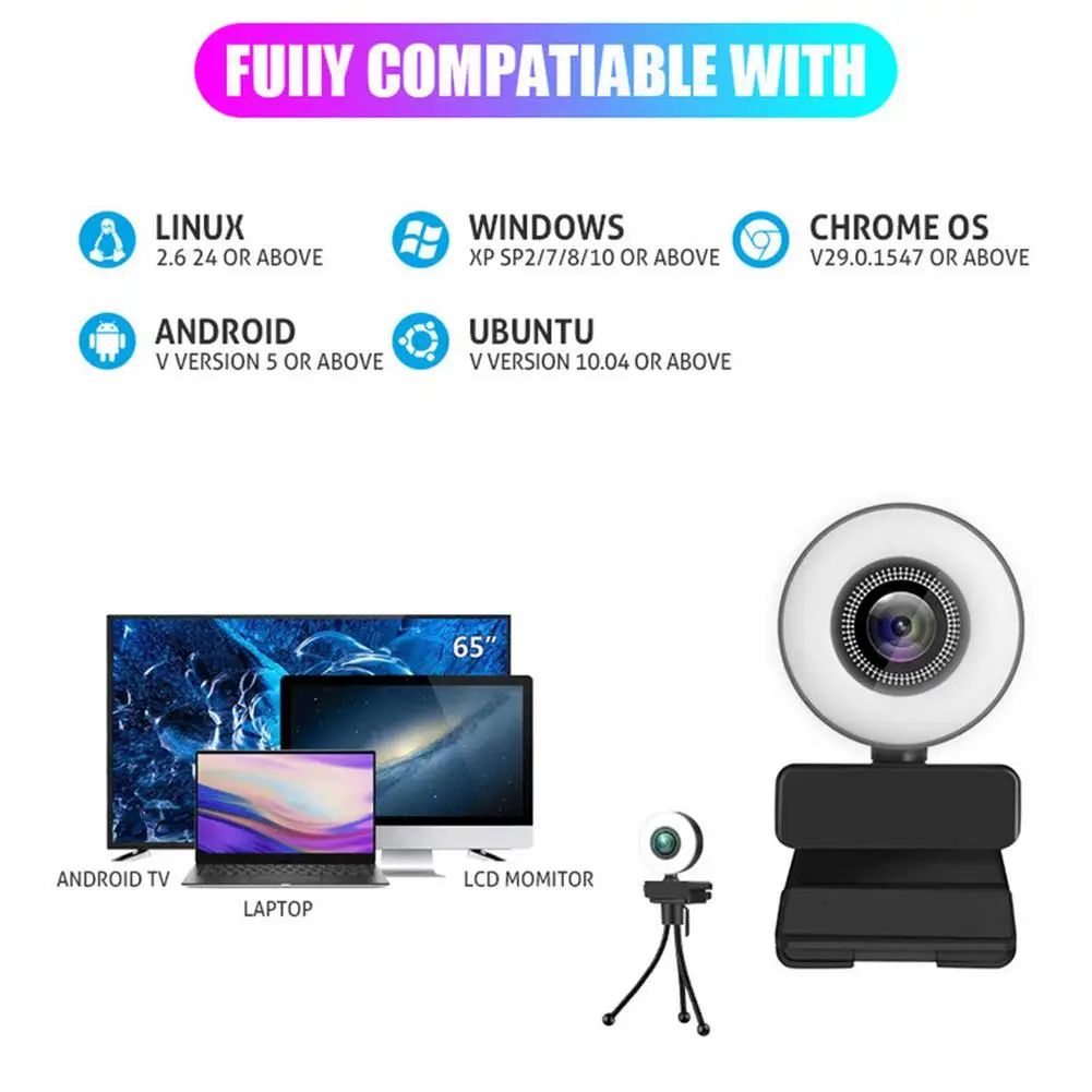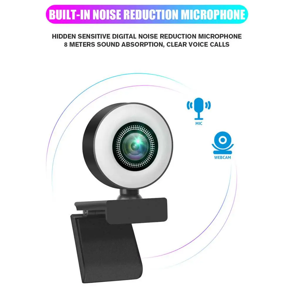 Description:1. Adjustable Temperature and White Light: Full HD 4K 5 million web camera, the camera has a built-in ring light and white light with 24 LEDs. The brightness can be adjusted through the sensitive touch control, so you can reach the ideal brightness condition in the dim lighting environment.2. Webcam with Dual Stereo Microphones: The illuminated USB webcam is an improved dual digital stereo audio microphone with automatic noise reduction function, which can capture clearer and clearer sound even from 10 feet away, thus ensuring that everyone can hear the real voice, and your fans can capture your voice in real time.3. 4K Full HD Webcam, Privacy Protection: Professional 90p wide-angle camera with 90° wide-angle lens. The maximum resolution is realistic 4096*2160 pixels, which can provide a clearer display effect. The computer camera can rotate 360° in the horizontal direction and 180° in the vertical direction. When not in use, we can easily adjust the angle to protect our privacy.4. Multifunctional Accessories and USB Plug and Play: The webcam includes a flexible clip and an adjustable tripod, which can achieve the best viewing angle and can be used on most displays. Easy to use, no need to download other drivers or software. Plug and play through USB 2.0/3.0 interface.5. Widely Compatible: The camera with microphone supports real-time streaming on social games and entertainment websites such as for Twitch, for Zoom, for Skype, for Youtube, for Xbox one, for Xsplit, for Mixe, for Facebook, for Vlogging, for OBS, and it is compatible for Mac, for Windows, for Android , for Linux, laptops, desktops, etc. At the same time, easily, clearly and truly record video and sound.Specifications:Colour: blackEffective pixels: 2.0/4.0 MPSignal-to-noise ratio:> 50 decibelsVideo frame rate: 30FPS/ 25FPSField of view: 90° angleUSB cable length: about 1.5m/4.92 feetVideo stream: 4096*2160 @ 30fpsFill light: 24 lightsWorking environment: -20℃-60℃Size: about 52*75*23mm/2.05*2.95*0.96inchWorking voltage: DC5V/ 60mAh±6mAhPacking List:Webcam*1Triangular Bracket*1Instruction Manual*1Note:1. Due to the problems of lighting effects and shooting angles, there will be certain tolerances in the product, please understand.2. Due to manual measurement, the product has some size tolerance.![]()