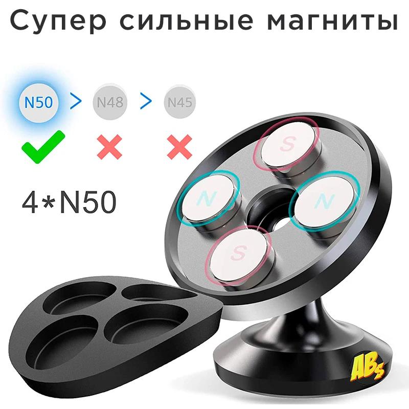 4 крепких магнита, чтобы телефон надежно держался даже на кочках и при быстрой езде