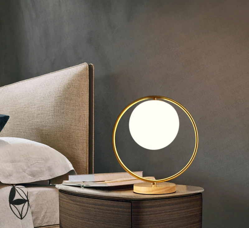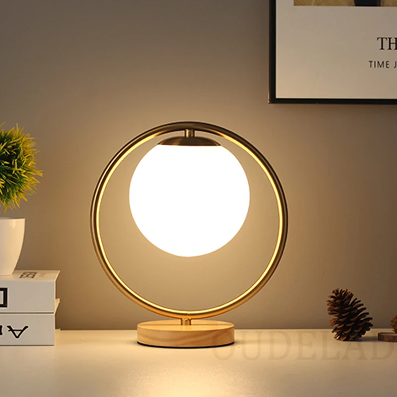 Скандинавский Стеклянный Шар Настольная лампа для спальни гостиной Декор настольная лампа теплая прикроватная Настольная лампа с деревянным дном