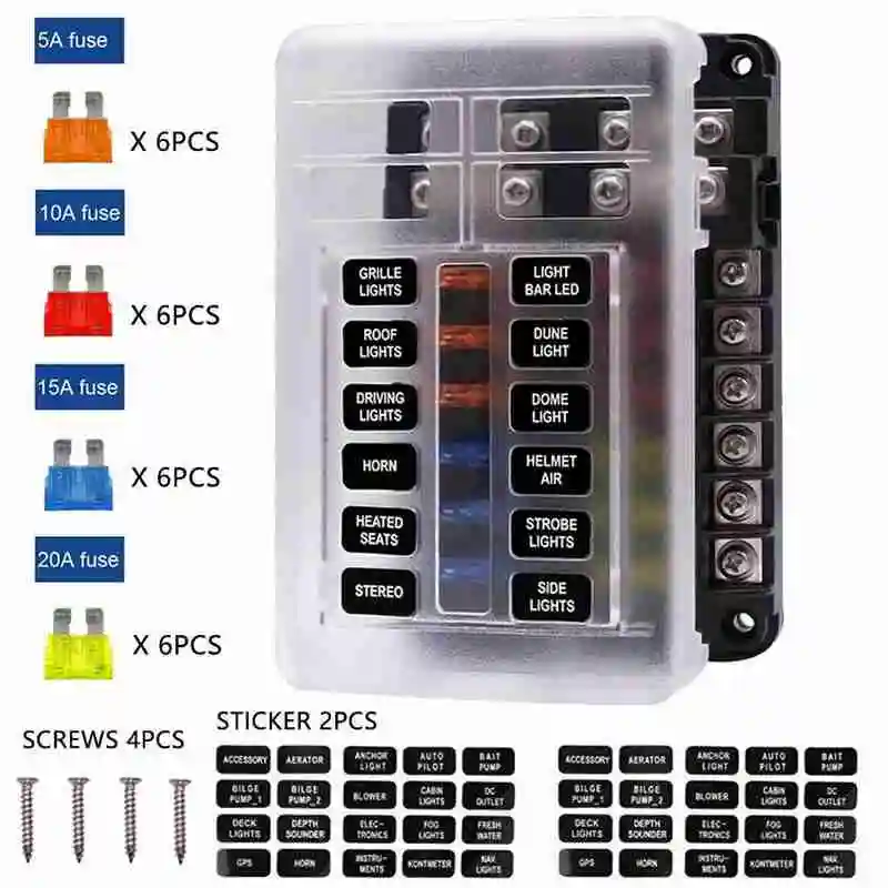 Название продукта: лезвие предохранителя коробка 12 способ распределения бар Автобус Лодка автомобильный комплект