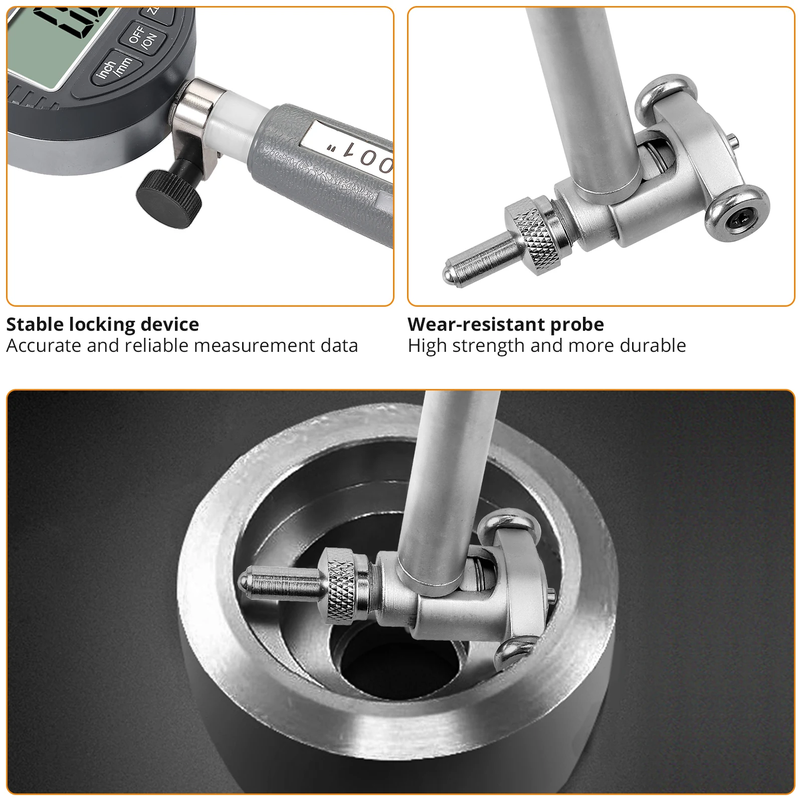 Используйте после нулевой настройки-перед измерением обязательно Настройте указатель индикатора циферблата на «0» и выберите измерительную головку соответствующего размера для измерения