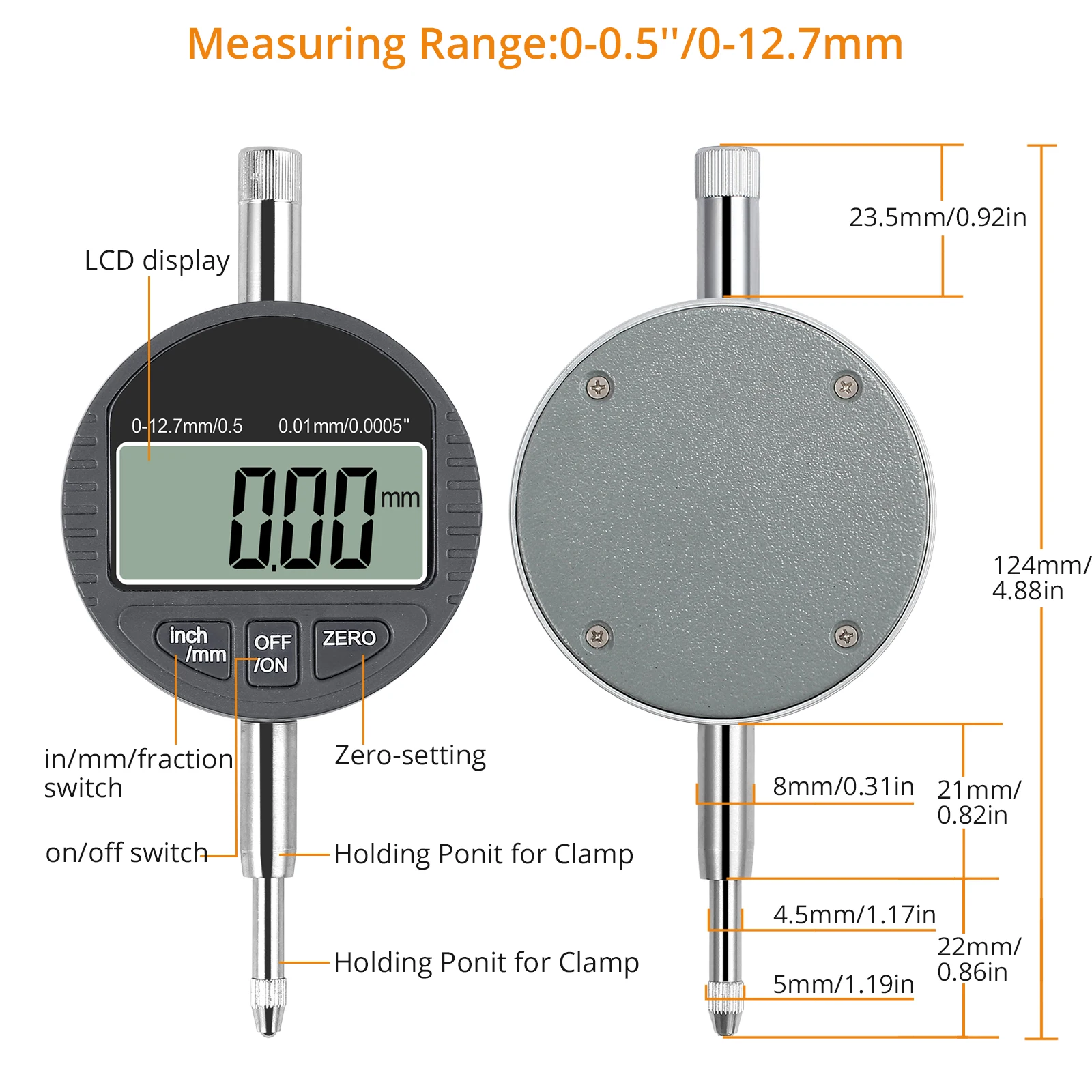 Диапазон измерения: 0 ~ 12,7 мм (0 ~ 0,5 дюйма)