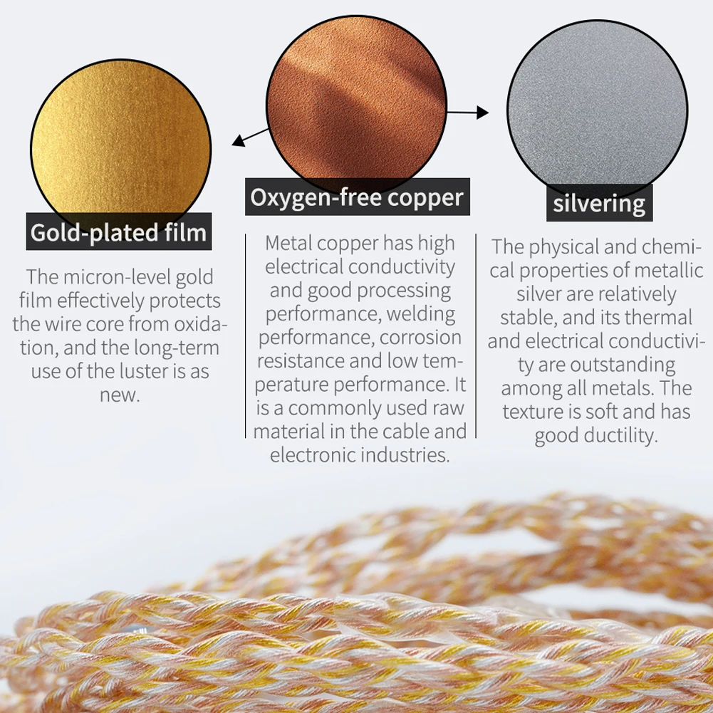 8-ядерный цвета: золотистый, серебристый медный плетеный наушники Обновление кабель для KZ CCA Наушники Замена кабеля 3,5 мм штекер 2 контактный разъем 4 фута