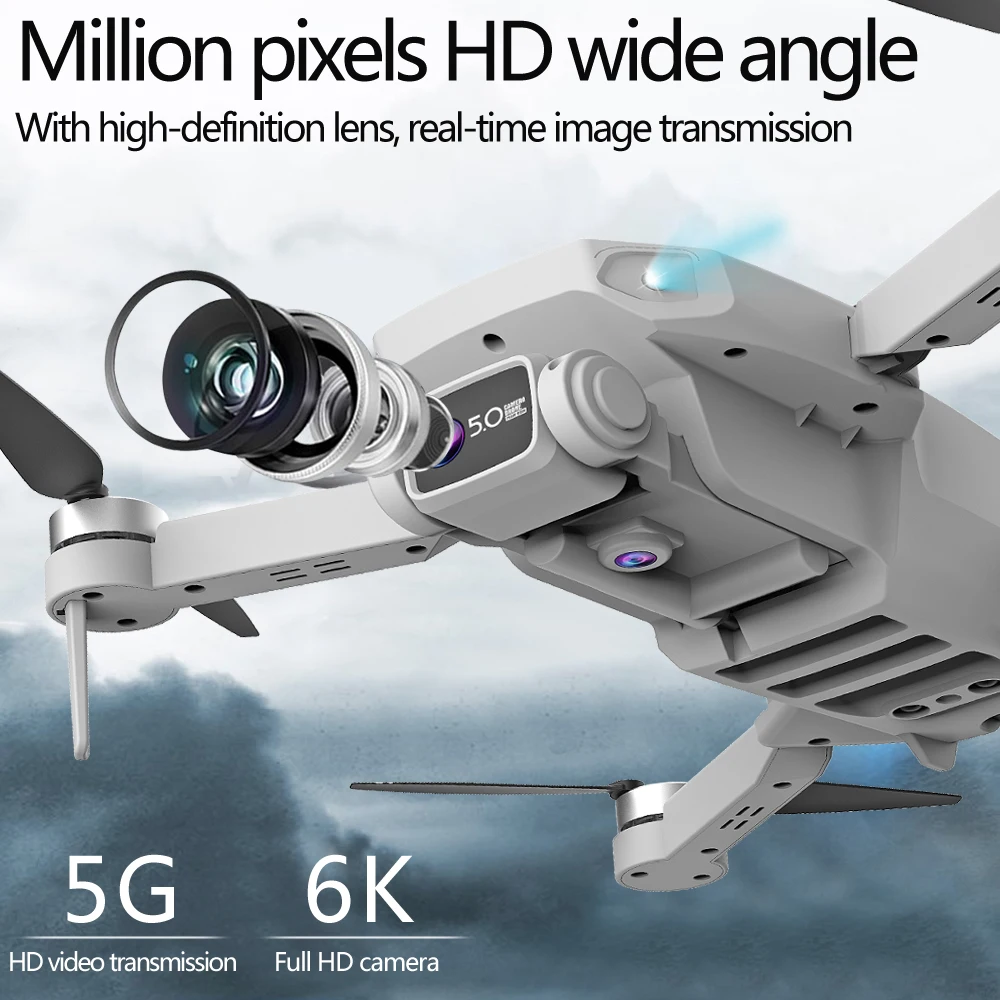 1. Передняя линза оснащена широкоугольным WIFI высокой четкости 6K, а нижняя часть 1080P оснащена оптическим потоком для переключения угла наклона камеры. Электрически Регулируемая версия может регулировать угол камеры на пульте дистанционного управления или в мобильном приложении.
