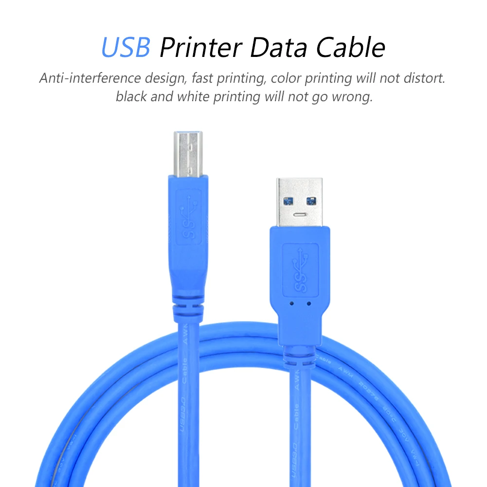 Высокая скорость передачи данных до 5 Гбит/с (USB 3,0)/480 Мбит/с (USB 2,0), кабель принтера обратно совместим с USB 1,1 (12 Мбит/с) И USB 1,0 (1,5 Мбит/с), безошибочное действие передача данных.