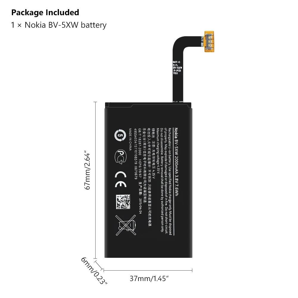С высокой емкостью 2000 мА · ч, меньше беспокойтесь о том, что ваш сотовый телефон будет мертвым в течение короткого времени.