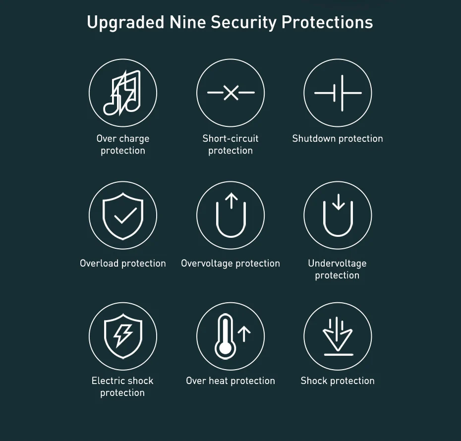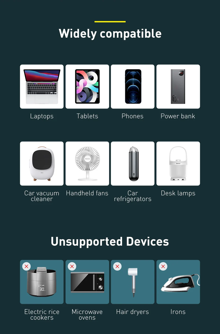 Пиковая мощность 150 Вт позволяет одновременно подавать питание нескольким устройствам, безопасно и стабильно.
