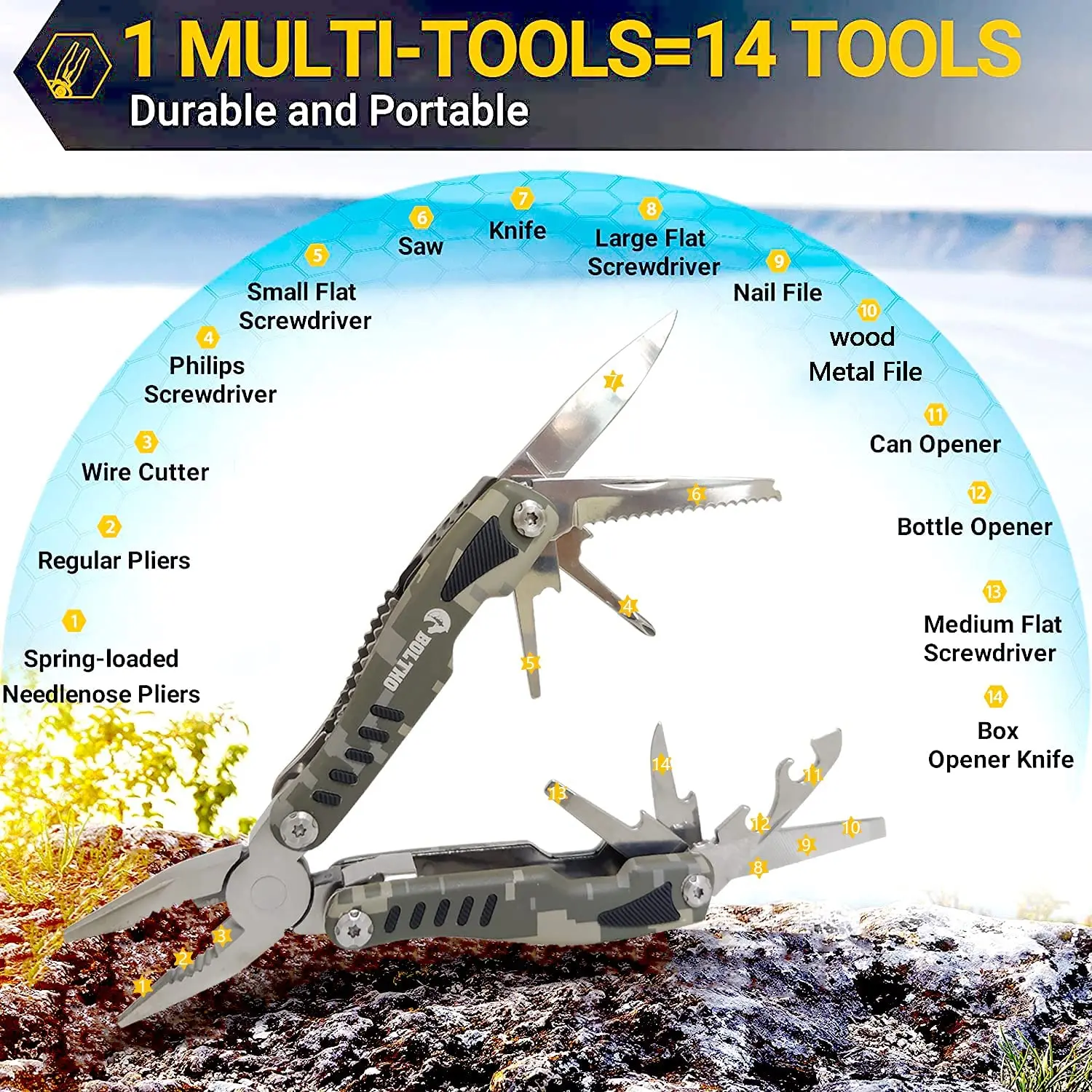 ❤[Многофункциональный инструмент 14 в 1] плоскогубцы для игл, изогнутые плоскогубцы, резец проволоки, лезвие ножа, лезвие пилы, Отвертка Phillips, шлицевая отвертка, файл, кожаный штамп, открывалка для бутылок и консервная банка. Подходит для ежедневных нужд