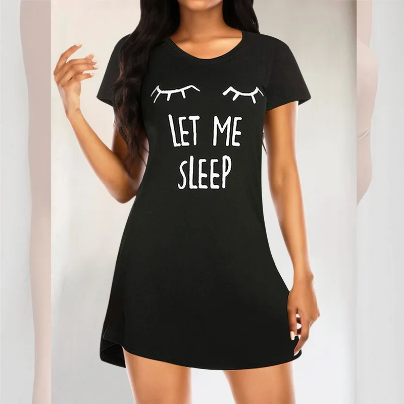 2021 женские ночные рубашки с буквенным принтом и ночные рубашки, одежда для сна, Милая Ночная рубашка с принтом, ночная рубашка с коротким рукавом, одежда для сна.