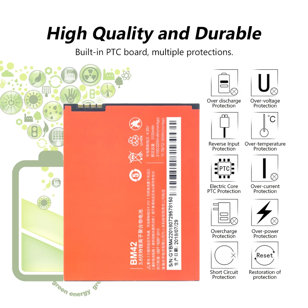 Применяя высокопроизводительный интегрированный Микрочип и печатную плату внутри, наши батареи имеют множественную защиту от перенапряжения, перегрузки по току, разрядки, перезарядки, перегрева, перегрева, короткого замыкания и обратного ввода.