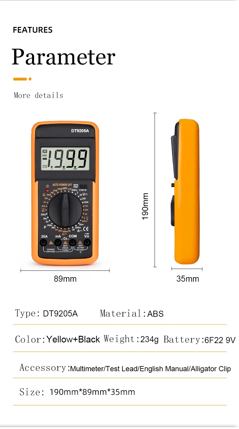 My9205a manual range true RMS AC DC ammeter voltmeter Tran