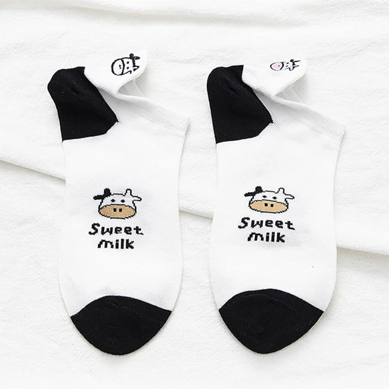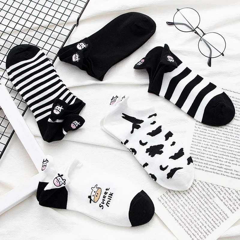 Упаковка: 5 пар/упак. BОтсутствие белого цветаНоски-башмачки с вышивкой коровы