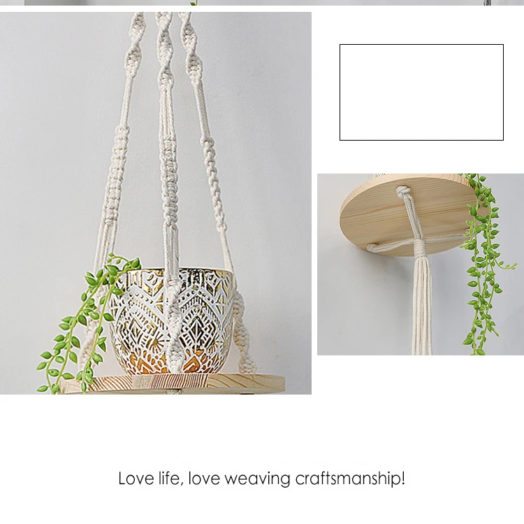 1. Высокая прочность: Наша деревянная подвесная полка изготовлена из натурального хлопкового каната, гигиенична и долговечна. Он прочный и может быть установлен на стене.