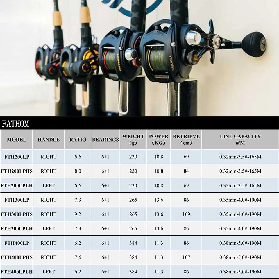 Пенн? Низкопрофильные Катушки baitcast Fathom предлагают все функции, которые вам нужны для борьбы с самой тяжелой морской рыбой. Полностью металлический корпус и правая боковая пластина, сочетающиеся с латунной основной шестерней и подшипником, поддерживающей шестерню, обеспечивают подъездный поезд с непревзойденной мощностью, В то время как ветряная система с жестяным покрытием и синхронизированная ветряная система сопротивления и уровня (только размер * 400) обеспечивают дополнительную прочность при высоких затычках. Доступно в 200, 300 и 400 размерах со стандартными и высокоскоростными передаточными числами. Левосторонние модели доступны только в стандартном передаточном отношении.