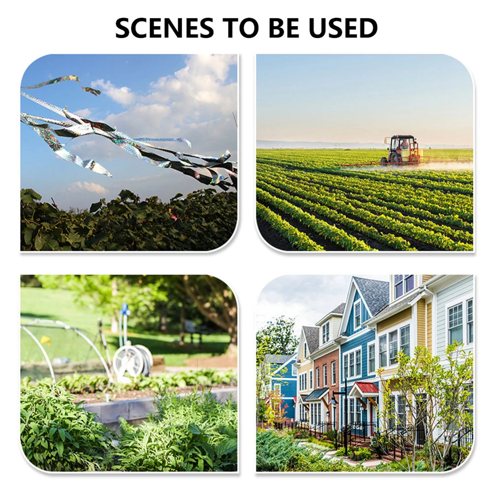 * 4. Подходит для садов, ферм, виноградников и садов. Когда ветер дует, лента с защитой от птиц также издаст звук, чтобы напугать птиц.