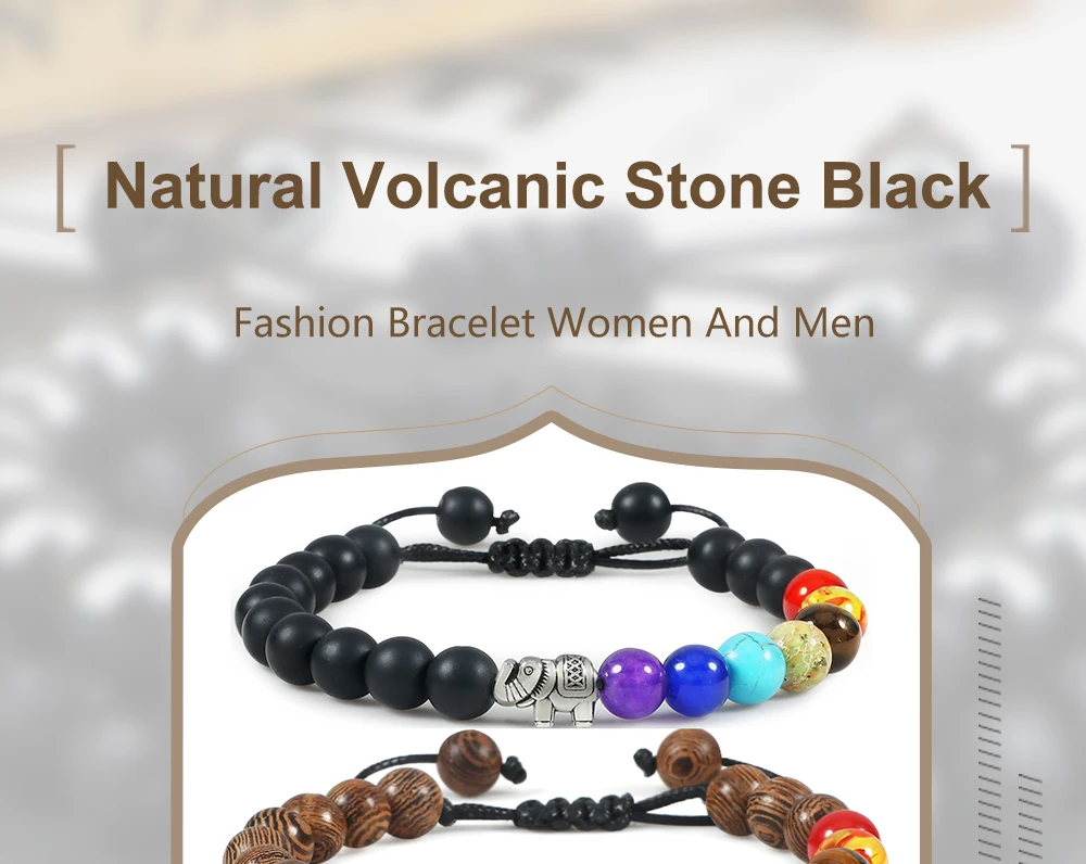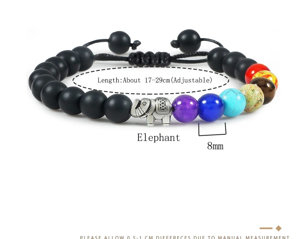 7 Чакра мужские браслеты баланс натуральный камень тигровый глаз Серебряный слон Бусы Браслеты и браслеты для женщин медитация Йога ювелирные изделия
