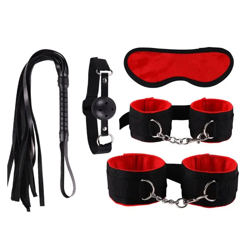 5 комплектов: (маска для глаз, заглушка для рта, манжеты на лодыжке, наручники и плетение из искусственной кожи).