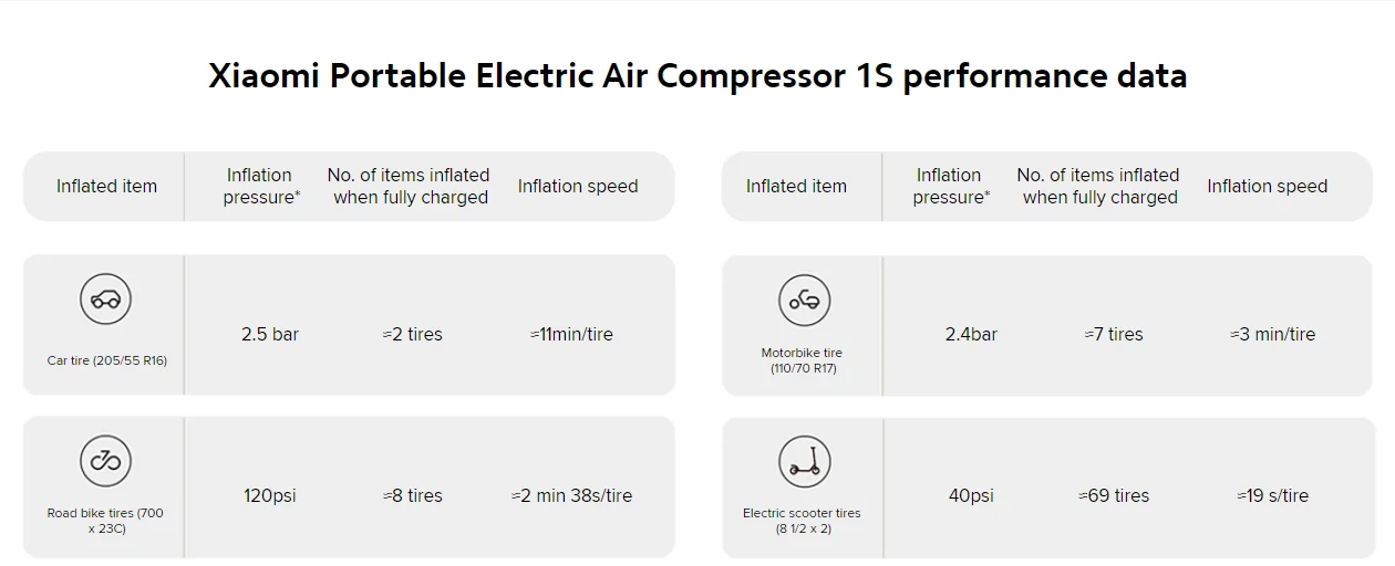 Портативный Электрический воздушный компрессор Xiaomi 1S автоматически прекращает надувать ваши шины, когда достигается желаемое предварительно установленное давление. Он также запоминает ваши значения давления, поэтому вам не придется устанавливать повторно.