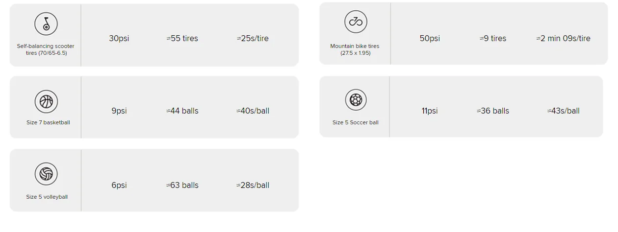 Высокоточный литой блок цилиндров изготовлен из легированных материалов надувается от 0 psi до 150 psi всего за 20 секунд *, что делает его пригодным для использования с амортизаторами на горных велосипедах, А также шины высокого давления для дорожных велосипедов. Готовы ездить с вами.