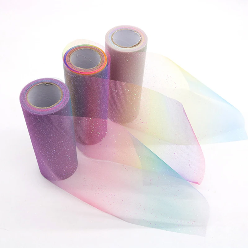 10 ярдов Радужная блестящая фатиновая Ткань DIY ремесло пояс для душа юбка-пачка головной убор подарочная упаковка украшение для свадебной вечеринки