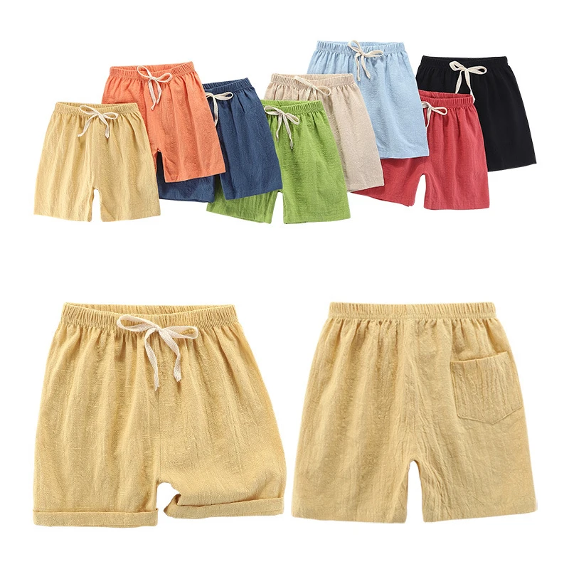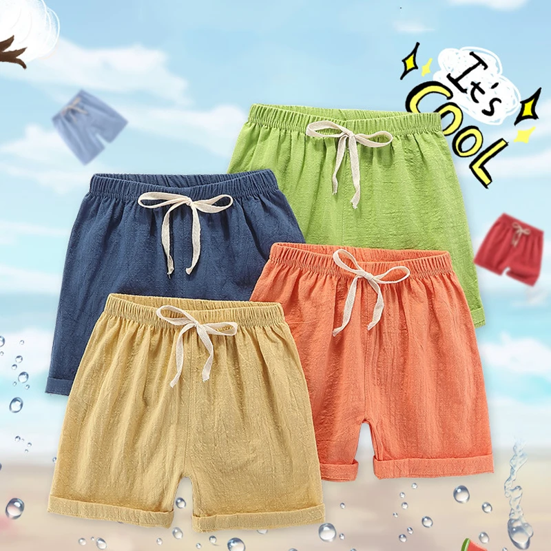 Детские Шорты повседневные штаны для мальчиков 2021 г. Летние тонкие Пляжные штаны из хлопка и льна для маленьких и средних размеров