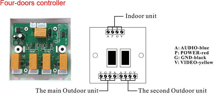 Четырехдверный контроллер (четырехсторонний селектор) будет использован для соединения двух/трех/четырех наружных камер вместе!