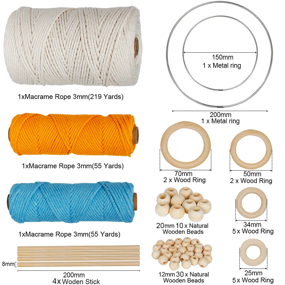 Наборы шнуров макраме 3 мм 329 ярдов натуральная веревка макраме 40 шт. деревянные бусины ручной работы хлопковая веревка настенные гобелены для вешалки растений Craft