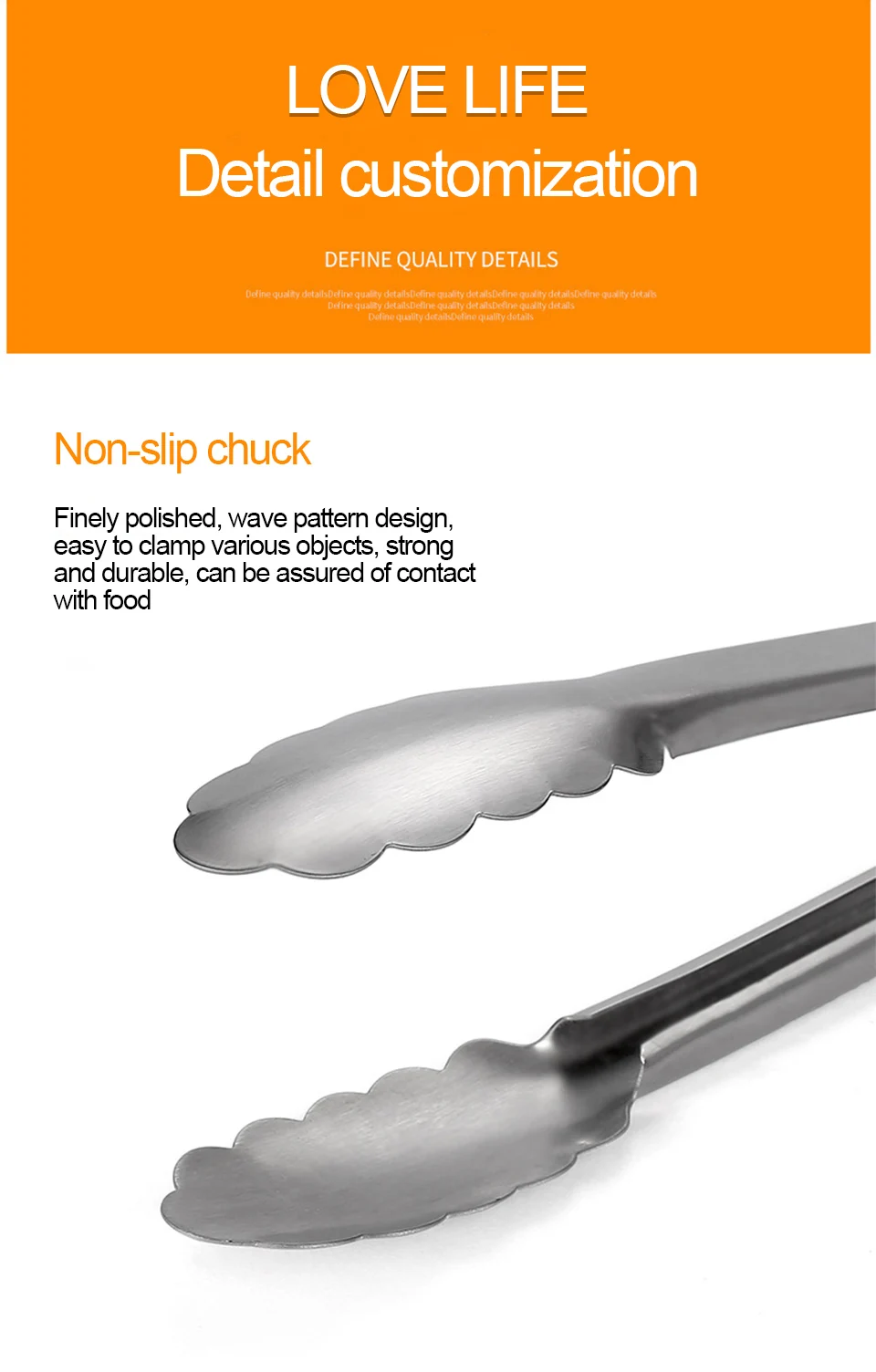 Finely polished, wavy design can easily pick up a variety of foods, strong and durable, and can be assured of contact with food.