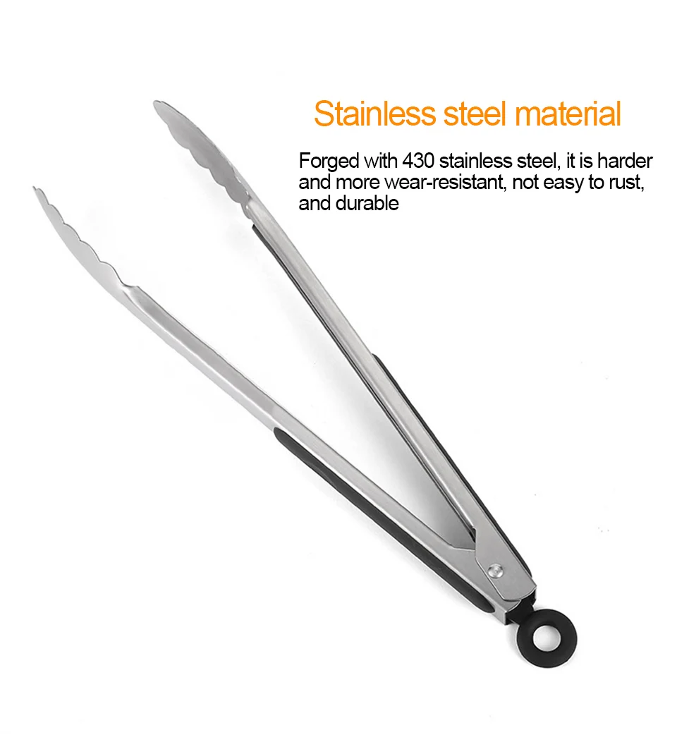7/9/12/14/16 Inch Stainless Steel BBQ Grilling Tong Salad Bread Serving Tong Non-Stick Kitchen Barbecue Grilling Cooking Tong